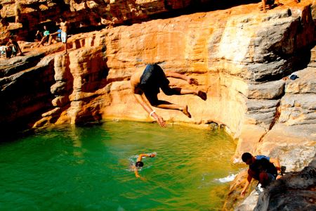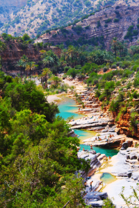 Paradise Valley – myślicie, że Maroko to tylko ocean i pustynia? Nic bardziej mylnego! Zaledwie 20 km od Taghazout znajduje się magiczne miejsce, nazywane przez miejscowych rajską doliną. Wśród gajów palmowych rozciągają się krystalicznie czyste jeziorka, w którym można pływać. Nie brakuje też różnej wysokości klifów, z których co odważniejsi skaczą do wody.