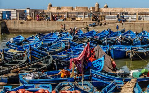 Essaouira – piękne rybackie miasteczko, niegdyś należące do Portugalii, co widać w architekturze i biało-niebieskich kolorach domów. Jeden z głównych portów rybackich Maroko, słynie również z przepięknej wydmowej plaży. Idealne miejsce na zakupy, szczególnie biżuterię, skóry i wyroby z olejku arganowego.